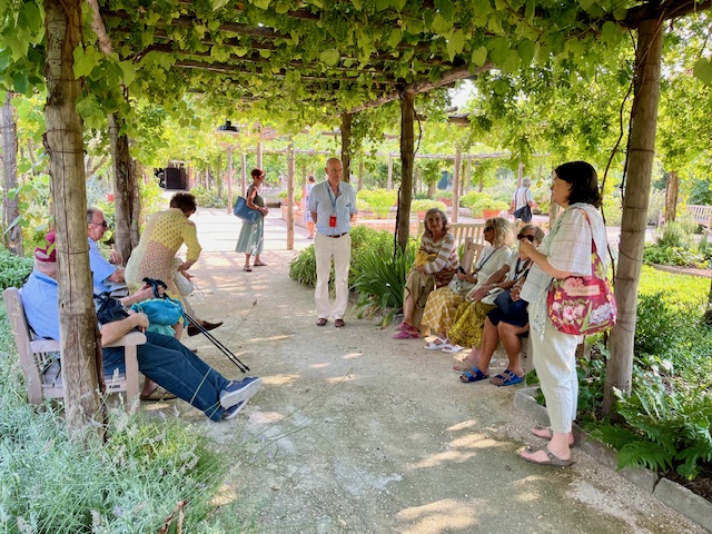 Il pomeriggio di sabato 5 luglio è iniziato con la vista alla mostra, organizzata a San Giorgio presso la Fondazione Cini, del progetto di Jean Nouvel, ormai in fase di completamento, della nuova sede della Fondazione Cartier a Parigi. Si è passati poi alle Stanze del Vetro per un’interessante visita guidata alla mostra  “1932-1942 Il vetro di Murano e la Biennale di Venezia”. Al termine, il gruppo si è spostato alla Giudecca per la visita guidata agli Orti/Giardini della chiesa del Santissimo Redentore. L’intervento, realizzato dalla Venice Gardens Foundation e conclusosi alla fine del 2024, è un eccezionale esempio di recupero di un’area fortemente danneggiata dall’acqua alta del 2019. La ricostruzione di un bellissimo orto/giardino con una atmosfera mistica e meditativa e un affaccio incantevole sulla laguna di Venezia. Per una parte del gruppo la giornata si è conclusa con un’ottima cena di pesce a Venezia.